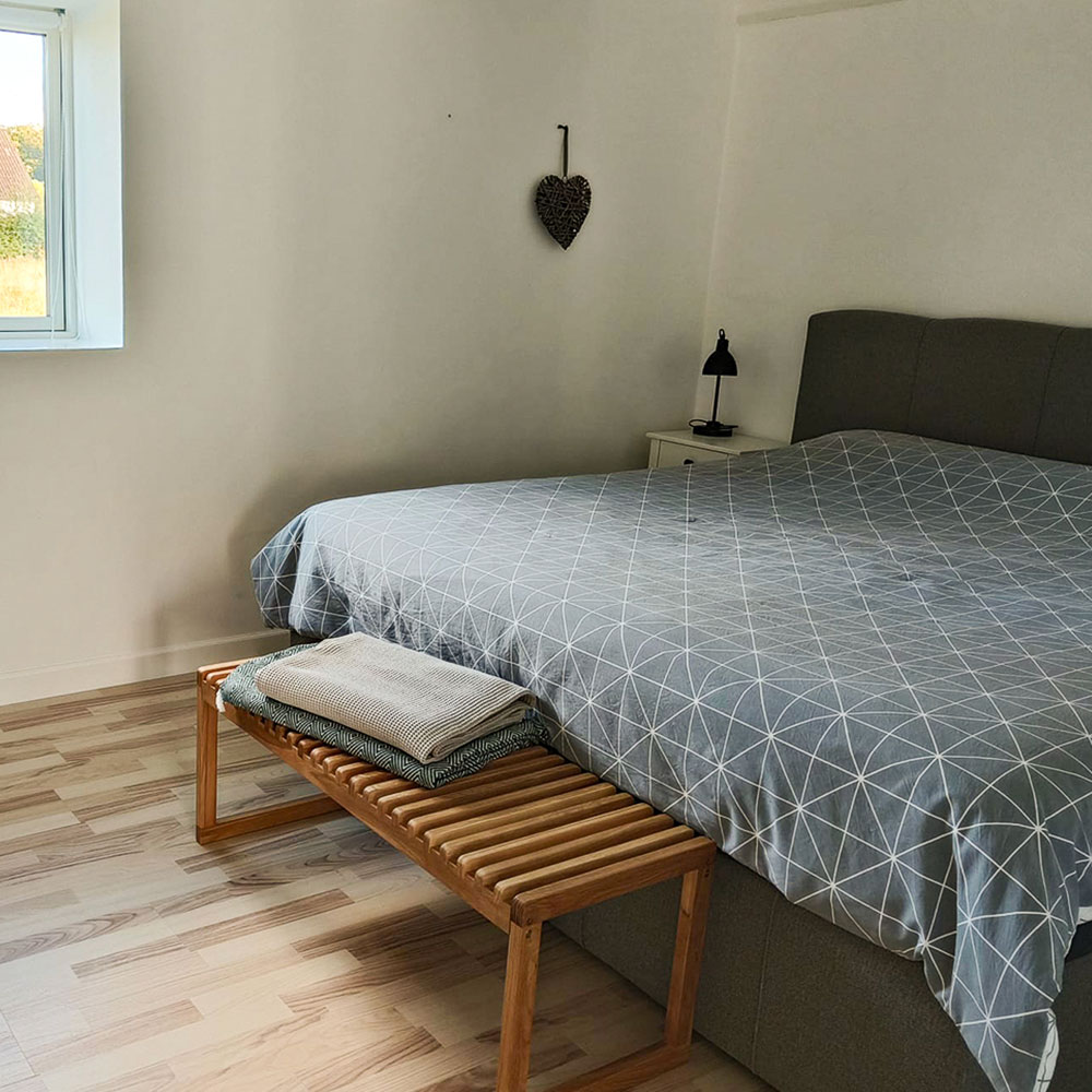 De kamer is sfeervol ingericht. Er is een heerlijk tweepersoonsbed en gebruik van bedlinnen is net als twee badhanddoeken en twee handdoeken in de prijs inbegrepen.